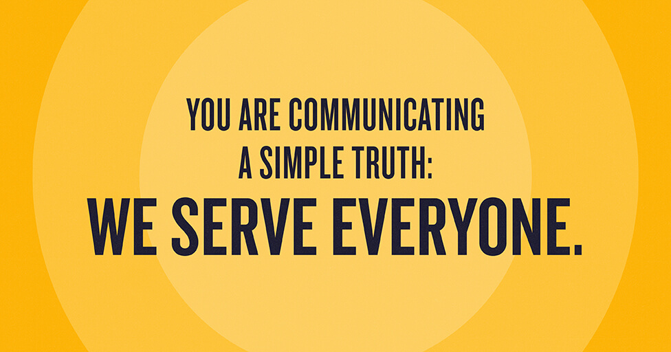 Every hospital has a mission, but yours is straightforward, easy to understand, and profound. In one way or another, you are communicating a simple truth: we serve everyone. Always.